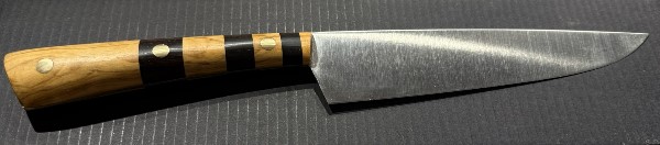 Der Griff dieses wunderschönen Messers besteht aus 2 miteinander kombinierten Holzvarianten, die dem Messer eine sehr edle Optik verleihen. Es handelt sich wie alle individuellen Messser aus meiner Werkstatt um eine einzigartiges Stück zum Preis von 495.- Euro.